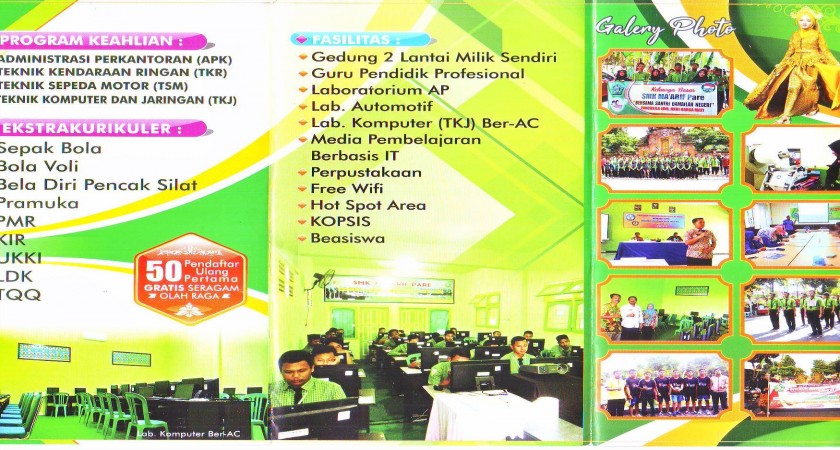 PROGRAM/JURUSAN MA MA'ARIF PARE IPA IPS PROGRAM UNGGULAN TAHFIDZUL QUR'AN MENJAHIT MULTIMEDIA EKSTRA KURIKULER DRUMBAND PRAMUKA FUTSAL FASILITAS GEDUNG BARU LANTAI 2 LAB. KOMPUTE